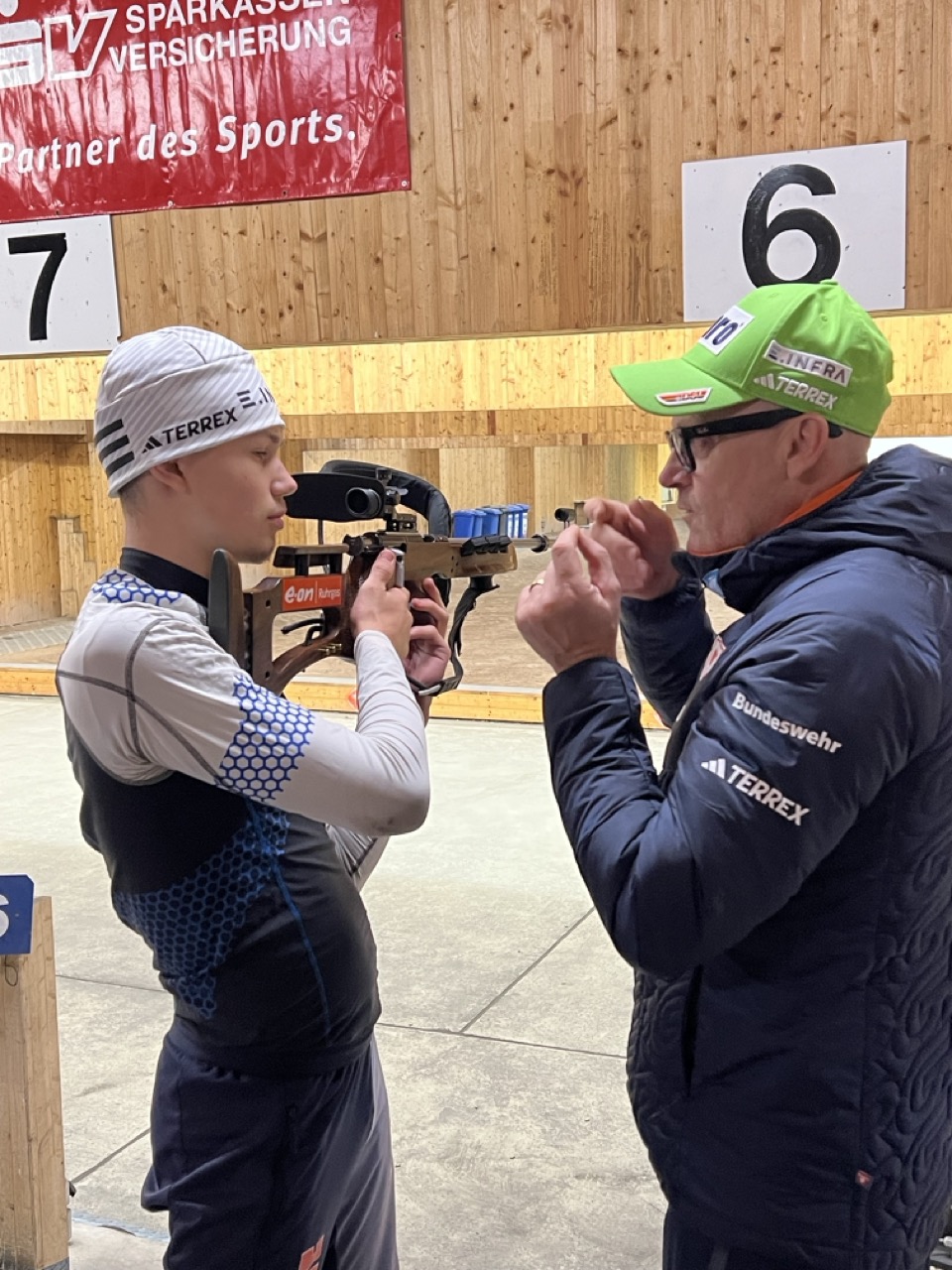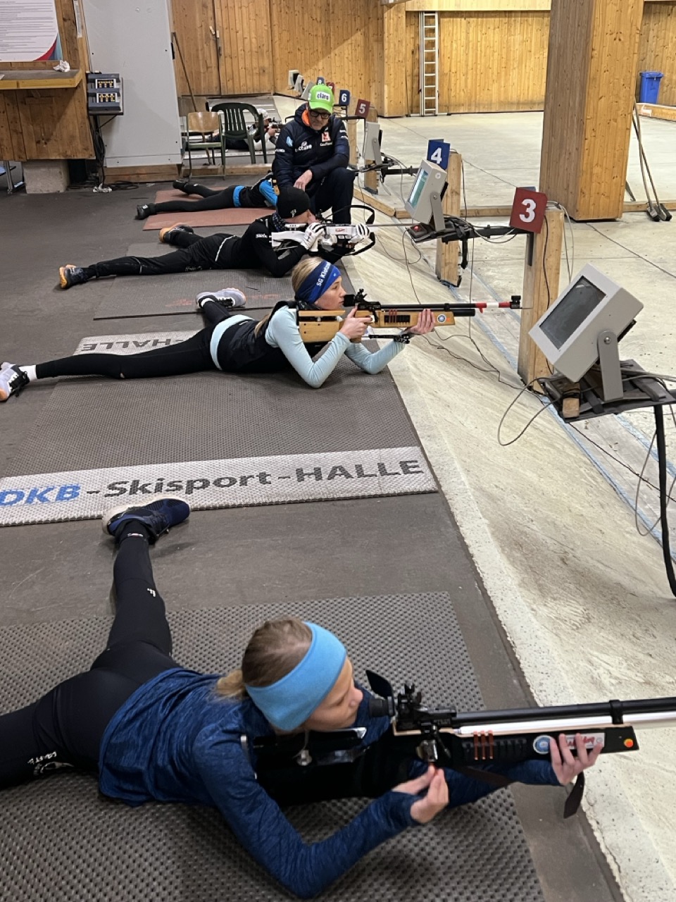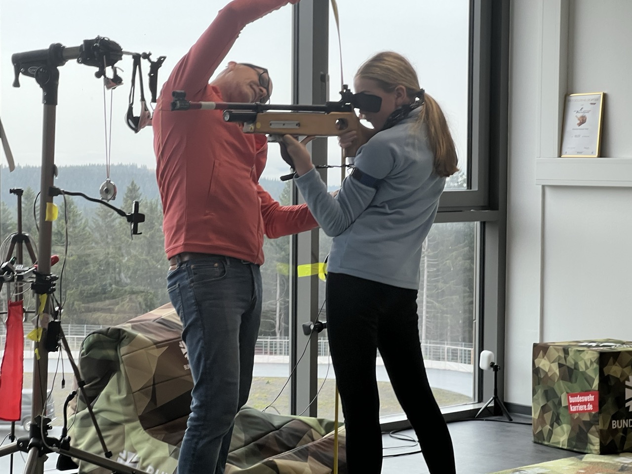 Auch das sonstige Training kam nicht zu kurz: Biathlon- und Skitraining in der Skihalle, Rollski-Training mit Schießhalle auf dem Grenzadler und spaßbetonte Einheiten in der Turnhalle und dem Kraftraum. Immer hatte man den Eindruck, dass alle Teilnehmer mit voller Aufmerksamkeit und auch mit viel Spaß dabei waren. So auch beim gemeinsamen Kochen oder dem abendlichen Dart- und Tischtennisspielen in der Kaserne am Rennsteig.
