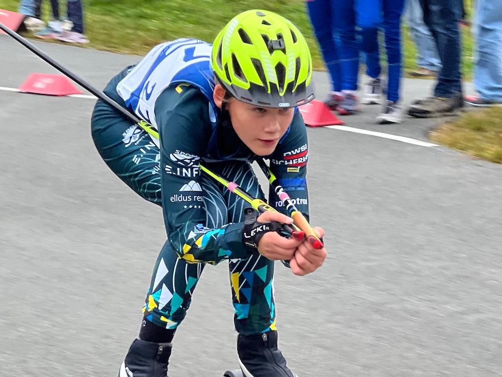 Das anschließende 5 km-Rennen ging mit der größten Gruppe an den Start. Nach fünf Runden kommt Pepe Lindner in der AK 12/13 als Erster ins Ziel. Emil Seifert folgt ihm auf Platz 6. Ann-Elen Adler gewinnt in derselben Altersklasse ihr Rennen, während Carolin Weiner in ihrem ersten Rollskiwettkampf einen starken 5. Platz belegt. In der AK 14/15 weiblich kommt es über 5 km zu einem reinen SG-Klotzsche-Duell. Laura Menzel entscheidet es für sich und sammelt damit weitere wichtige Punkte in der Gesamtwertung des Pokals. Ashley Badura belegt Platz 2 und bleibt ebenfalls aussichtsreich im Kampf um das Podest im Rollskicup Sachsen.