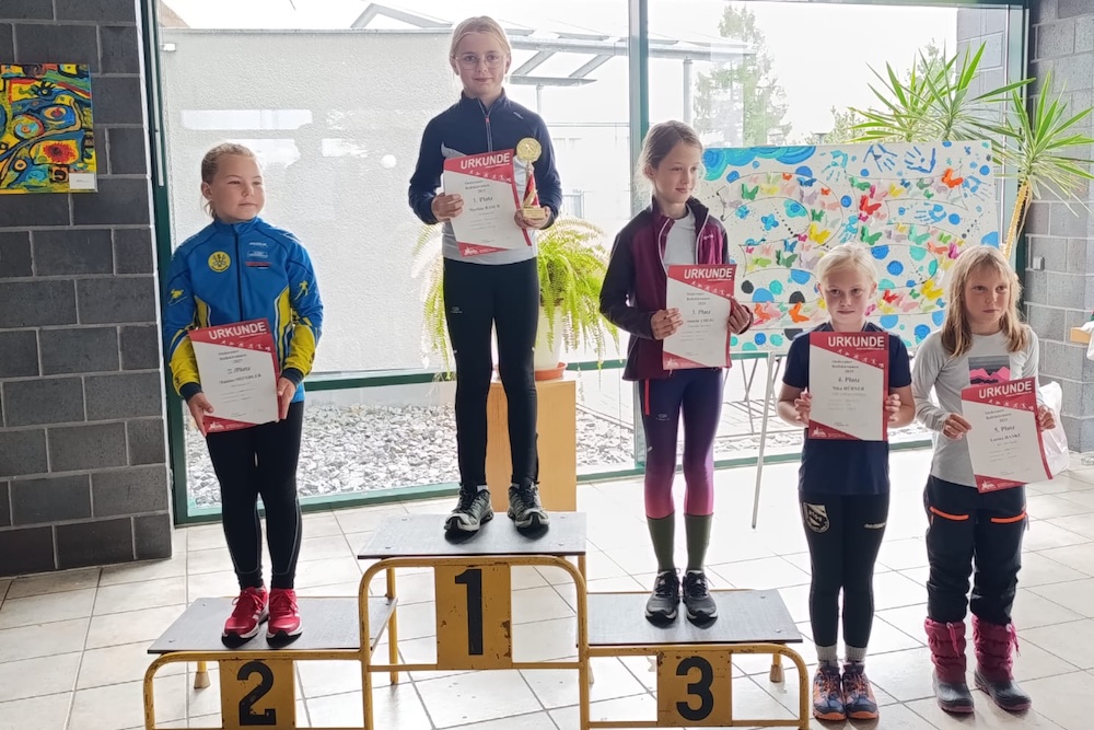 Mit den Siegen von Ann-Elen (12/13w) und Rafael (10/11m) war Familie Adler wieder einmal doppelt auf dem Siegerpodest vertreten. Auch Pepe Linder (12/13m) gewinnt sein Rennen - in der höheren Altersklasse 14/15 hätte seine gelaufene Zeit sogar für Platz 3 gereicht. Die weiteren Ergebnisse: Lisa Barthel (3. - 14/15w), Leonard Pump (3. - 16-18m), Lena Barthel (5. - 16-18w), Emil Seifert (6. - 12/13m), Lara Pump (6. - 12/13w), Mira Schaaf (7. - 16-18w), Laura Menzel (9. - 14/15w), Ashley Badura (11. - 14/15w), Linus Reichelt (12. - 16-18m).